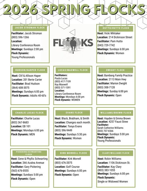 Flocks are small discipleship communities designed to empower and equip believers to fulfill their purpose of loving God, serving the church, and spreading the gospel.